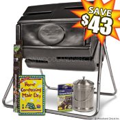 This high-performance tumbler is made of 100% recycled plastic in a heat-absorbing black color which helps compost "cook." It is easy to spin this compost bin on its sturdy base. Holds 7 cubic feet.